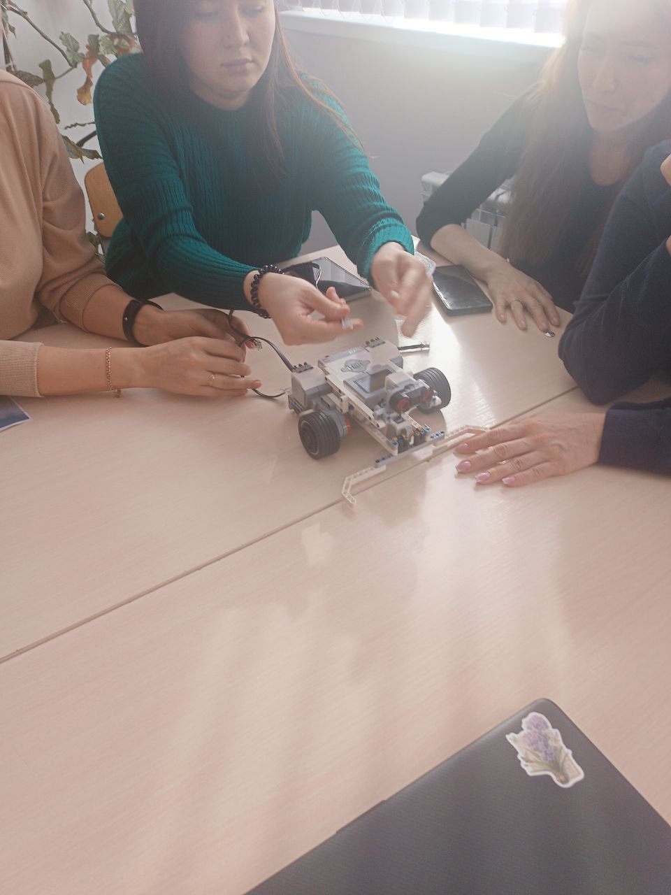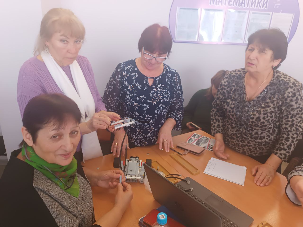 В практической части - педагог дополнительного образования МБОУ «Симферопольская академическая гимназия» Хасанова Анна Александровна, продемонстрировала Конструкторы LEGO MINDSTORMS EDUCATION EV3 и вместе с учителями провела практическую часть по сбору и программированию робота.