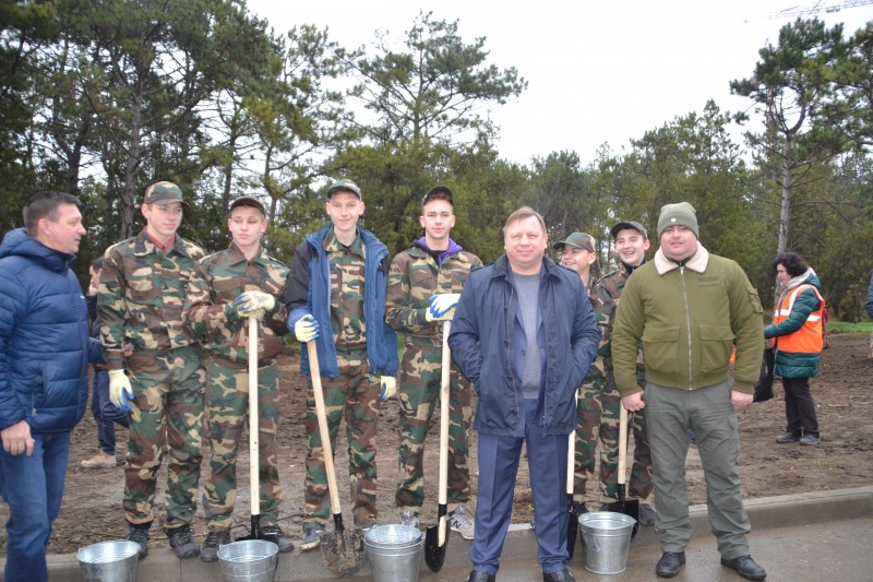 Представители администрации Симферополя, министерства экологии и природных ресурсов Крыма, компании-застройщика и Перевальненское школьное лесничество "ГОРЦЫ" высадили сотню саженцев деревьев (сосны и липы) в районе южного выезда из города на месте будущего сквера.