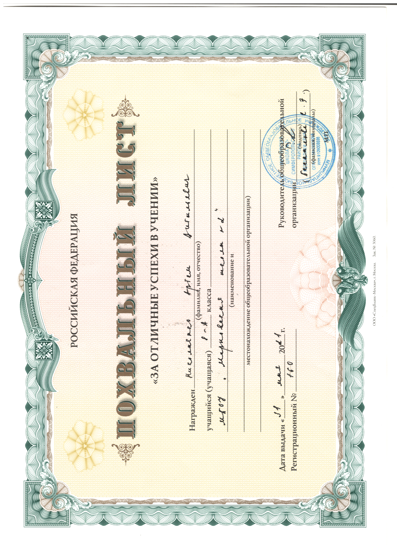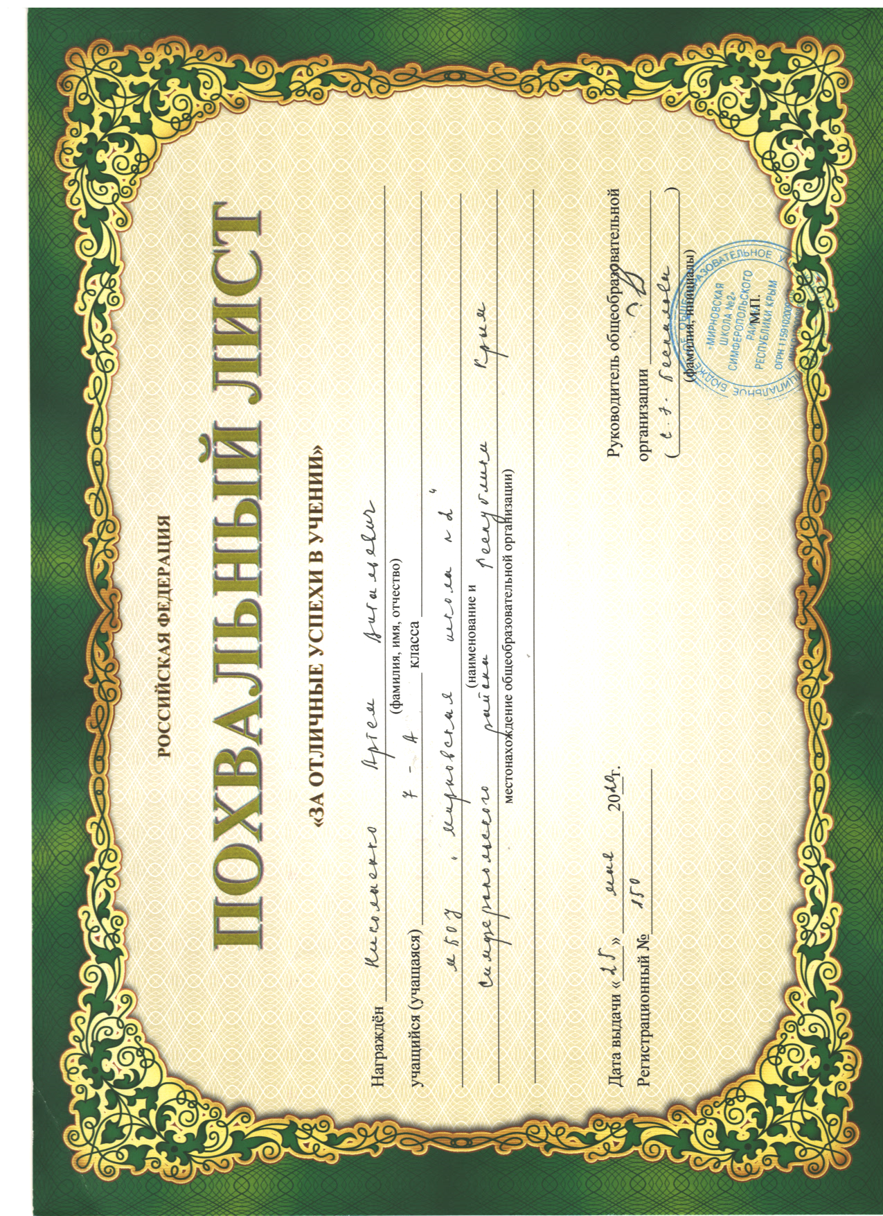 С первого класса я учусь на «отлично» и имею похвальные листы. В этом учебном году я получаю стипендию Государственного Совета Республики Крым за значительные успехи в учебе, научной и творческой работе.