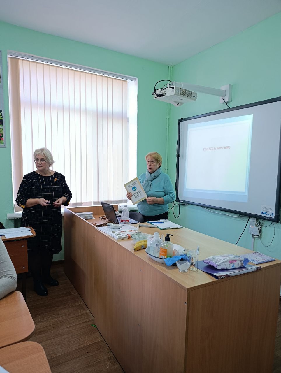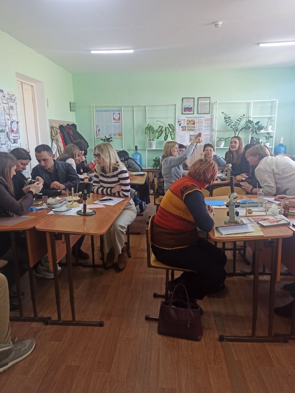 Чванова Е.В., директор МБОУ «Гвардейская школа-гимназия № 3», члены театрального коллектива «Вояж» (руководитель Крикницкая И.Л.) приветствовали педагогов района и гостя мероприятия- Бродскую Ольгу Николаевну, заведующую отделом организационно- массовой и методической работы ГБОУ ДО РК «Эколого-биологический центр». Ольга Николаевна выступила с докладом по теме «Научно-исследовательская работа как образовательная технология профильного обучения». Учитель биологии МБОУ «Гвардейская школа-гимназия № 3» Цимбал М.Б. поделилась опытом работы и провела практическую часть мероприятия с учителями биологии (педагоги работали в группах). Учителя биологии актуализировали знания по темам лабораторных и практических работ, выделяли нуклеиновые кислоты из клеток банана, выявляли передвижения воды и минеральных веществ в растениях, изучали методы клеточной биологии (хроматография).