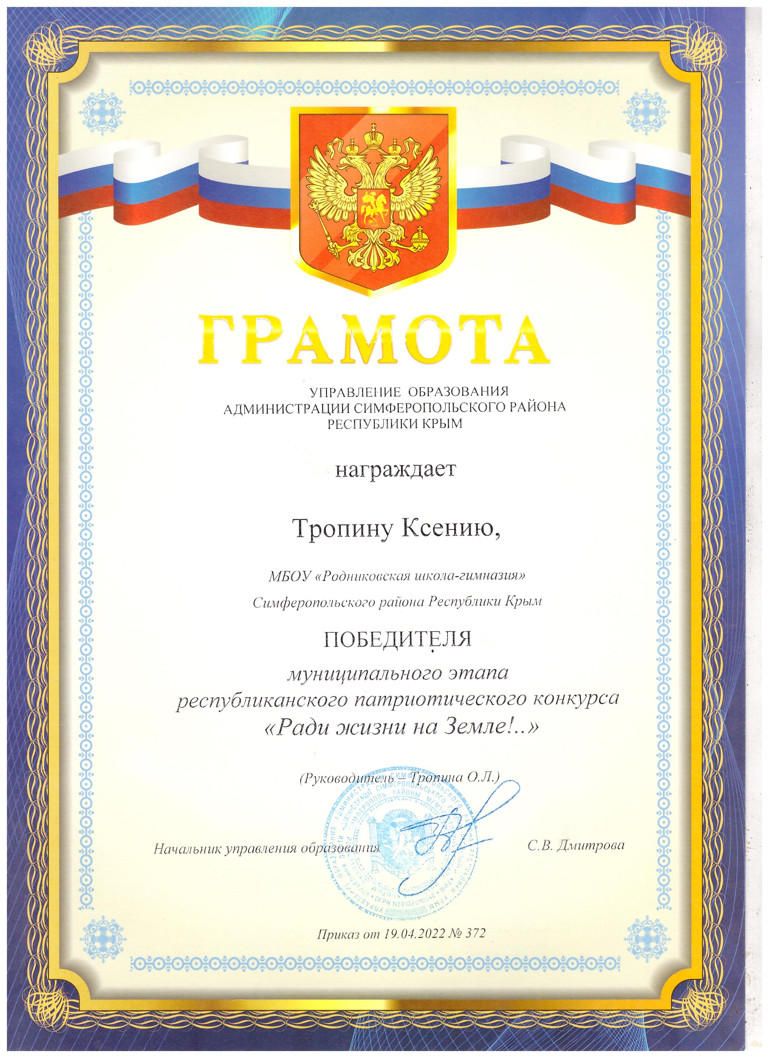 1. Стипендиат администрации Симферопольского района Республики Крым;