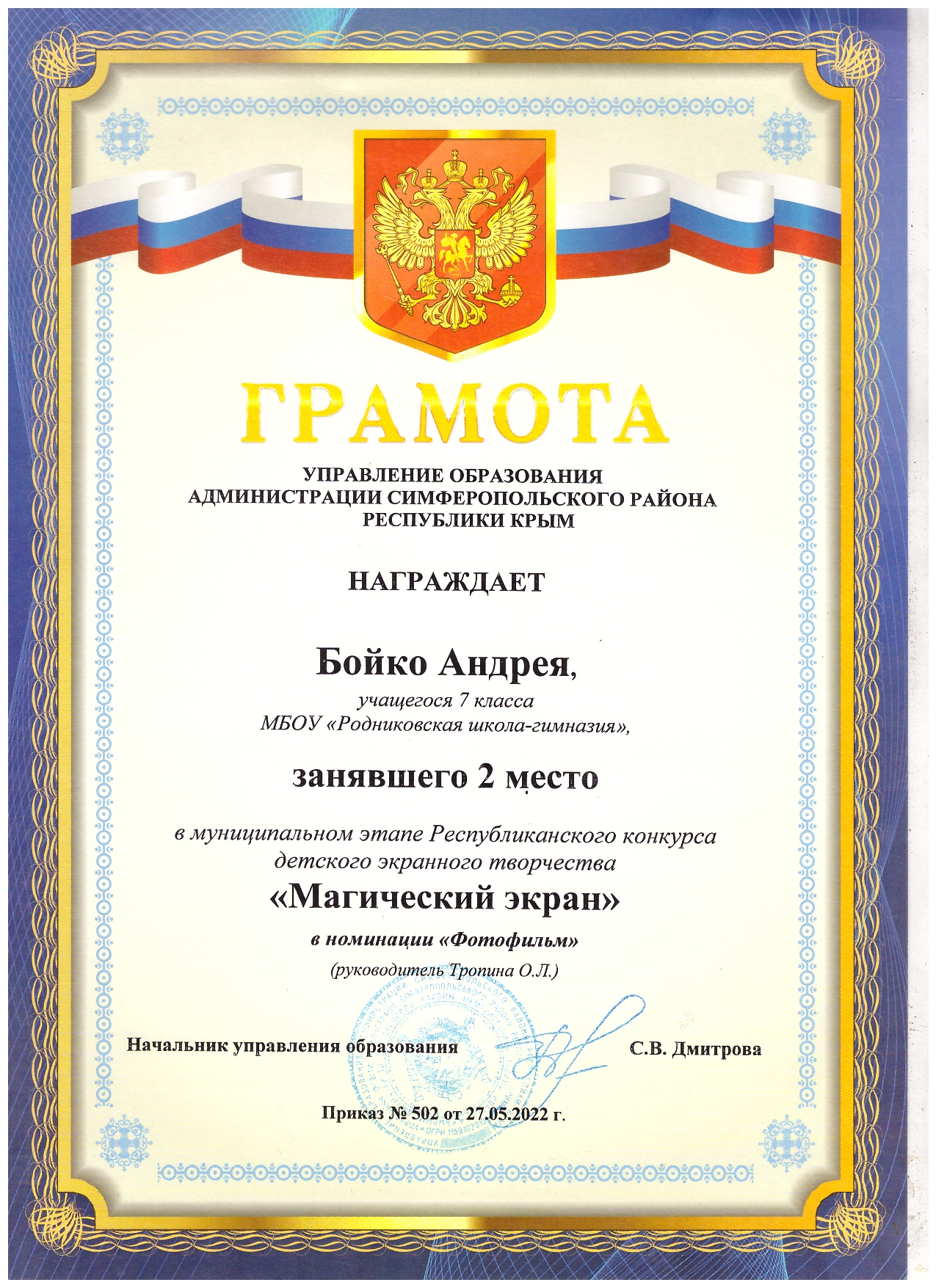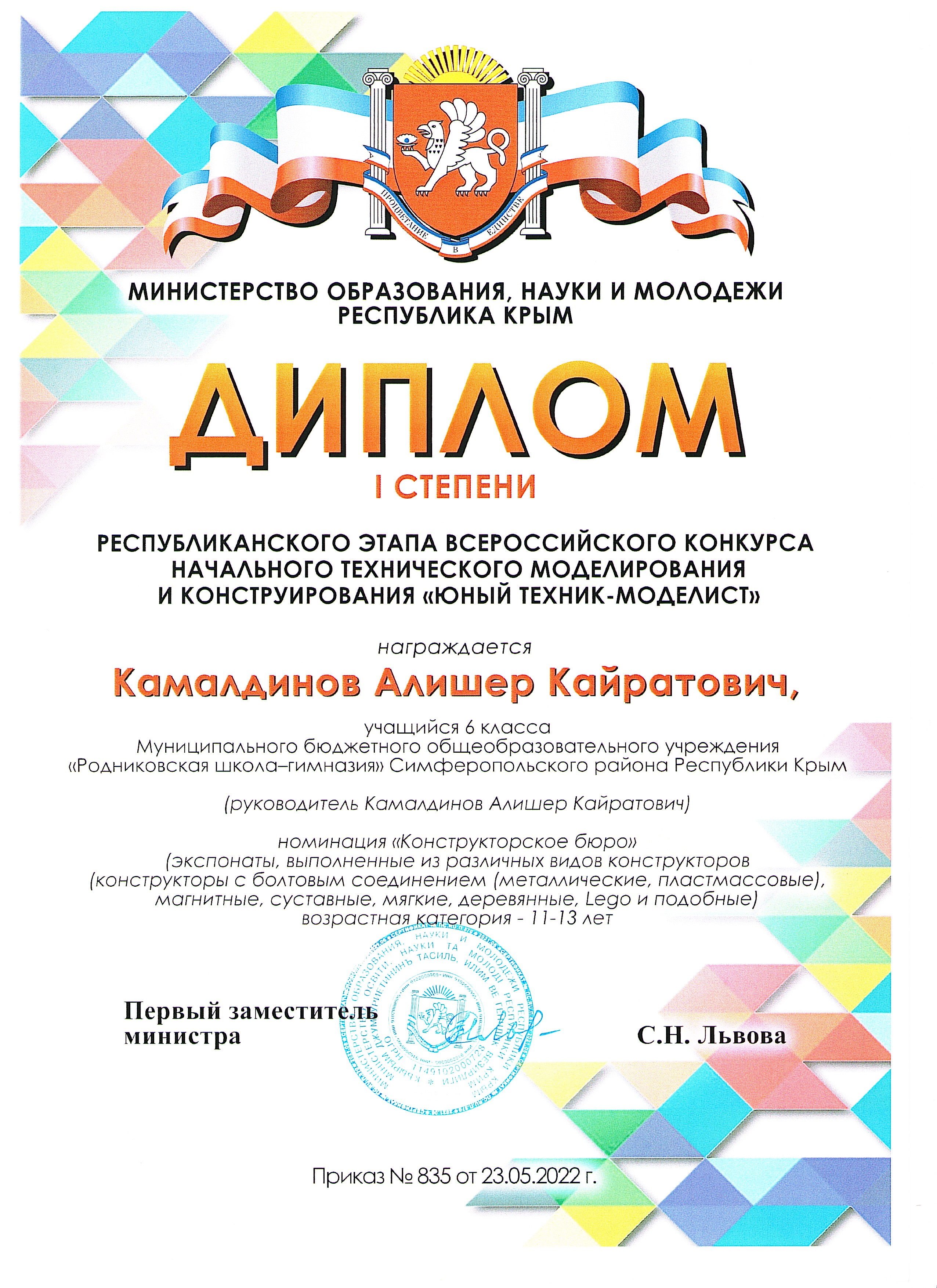 1.Стипендиат администрации Симферопольского района Республики Крым;