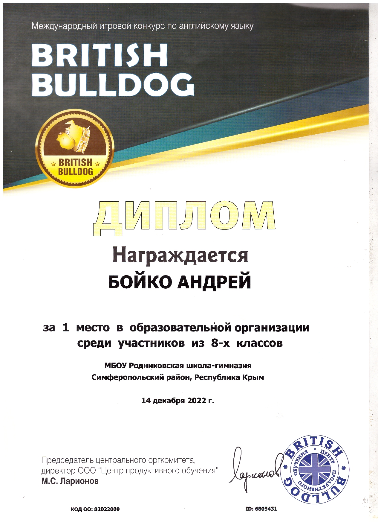 9. Дипломант I степени международного игрового конкурса по английскому языку “British Bulldog”;