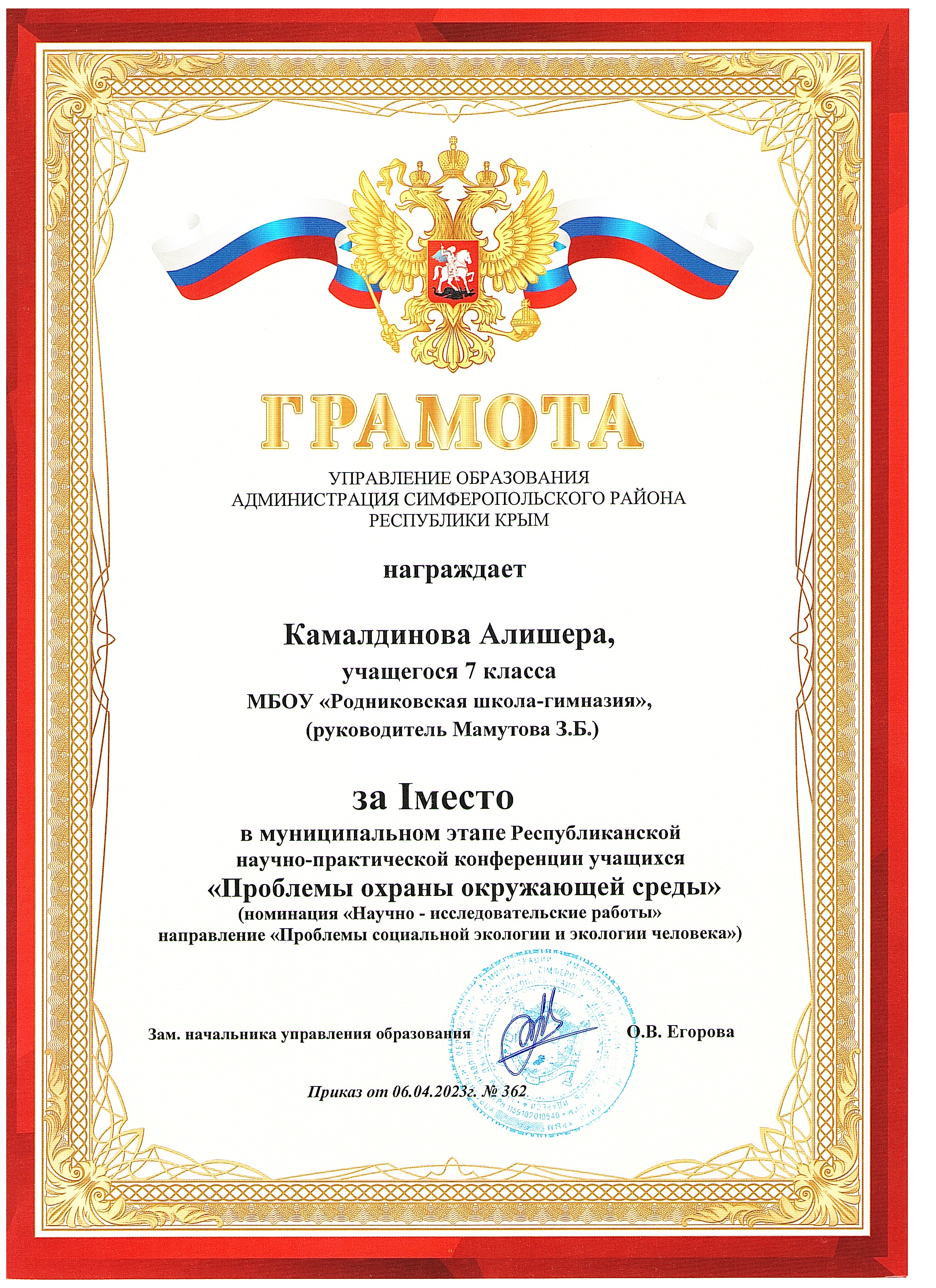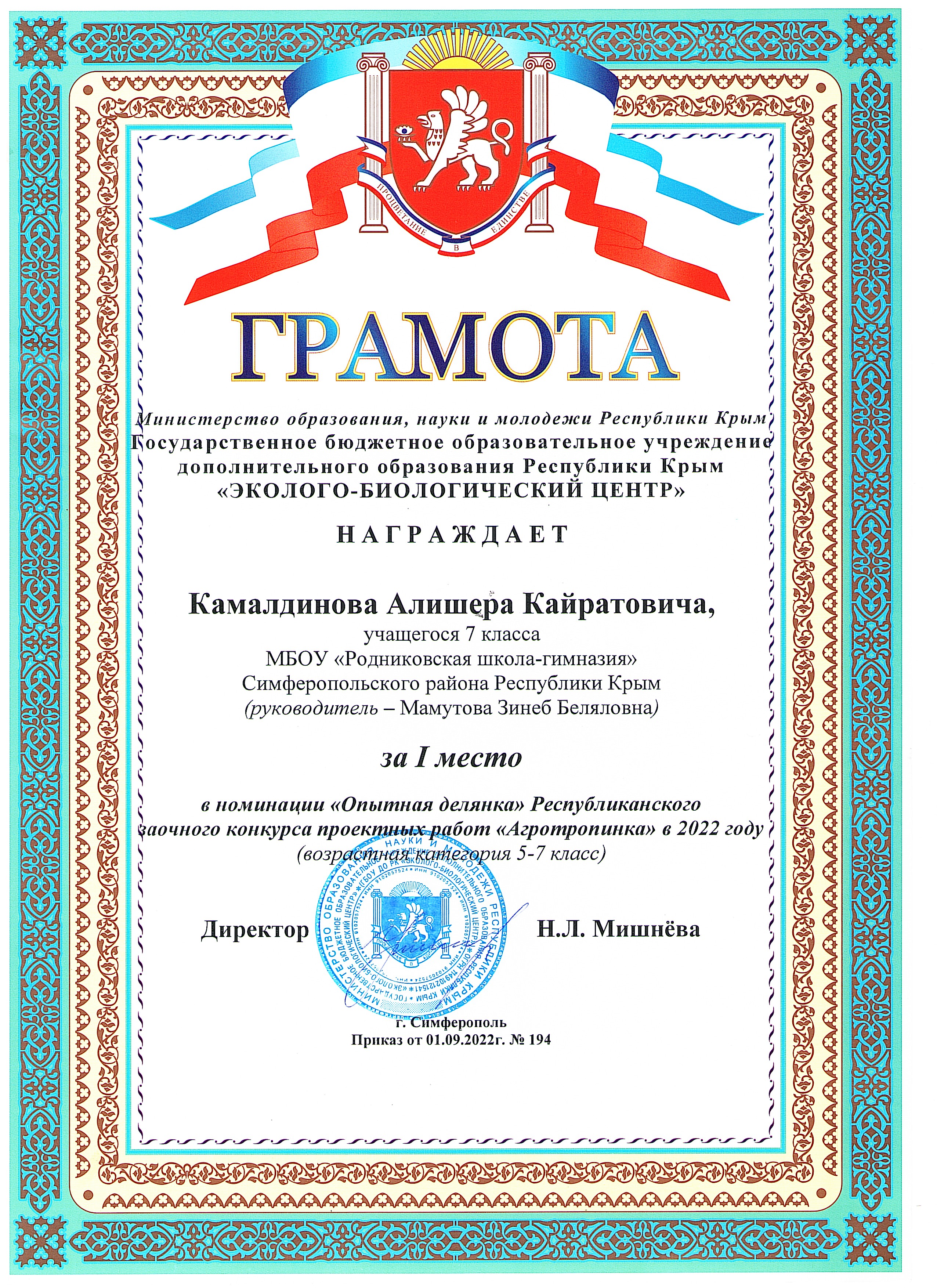 1. Стипендиат администрации Симферопольского района Республики Крым;