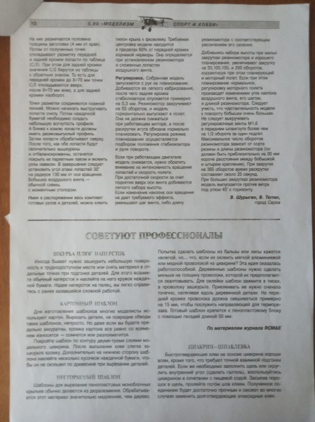 Изготовление зального метательного планера категории F1N. Определение центра тяжести.