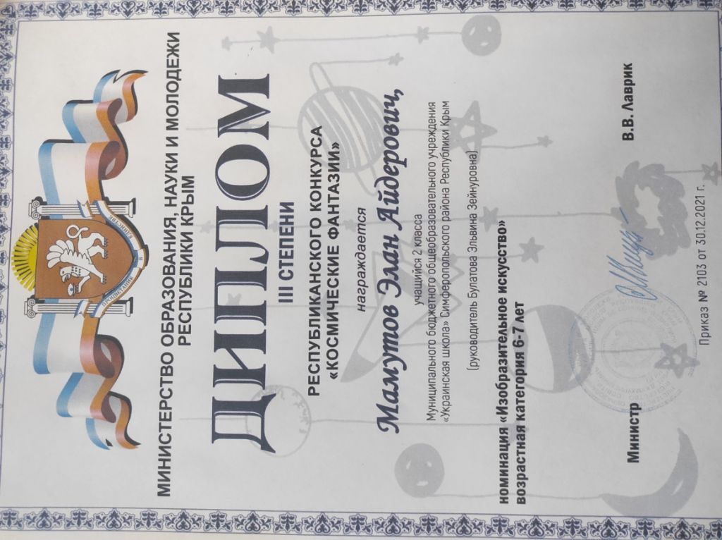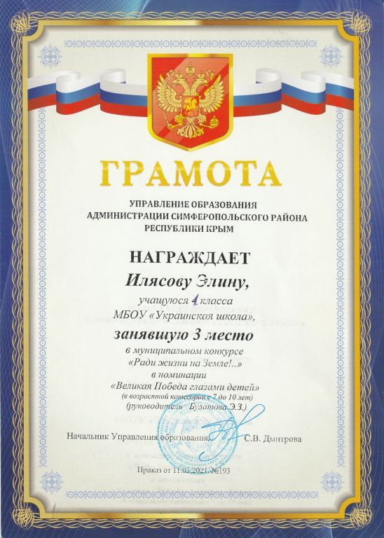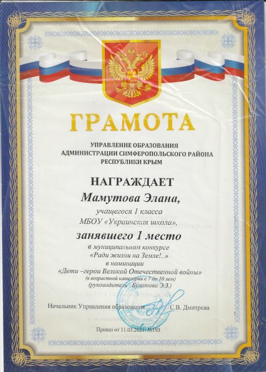 Диплом за участие в муниципальном этапе творческого конкурса «Мы-наследники Победы!» в Республике Крым и г. Севастополь 2019 г.- vk.com/alimeeeeeee